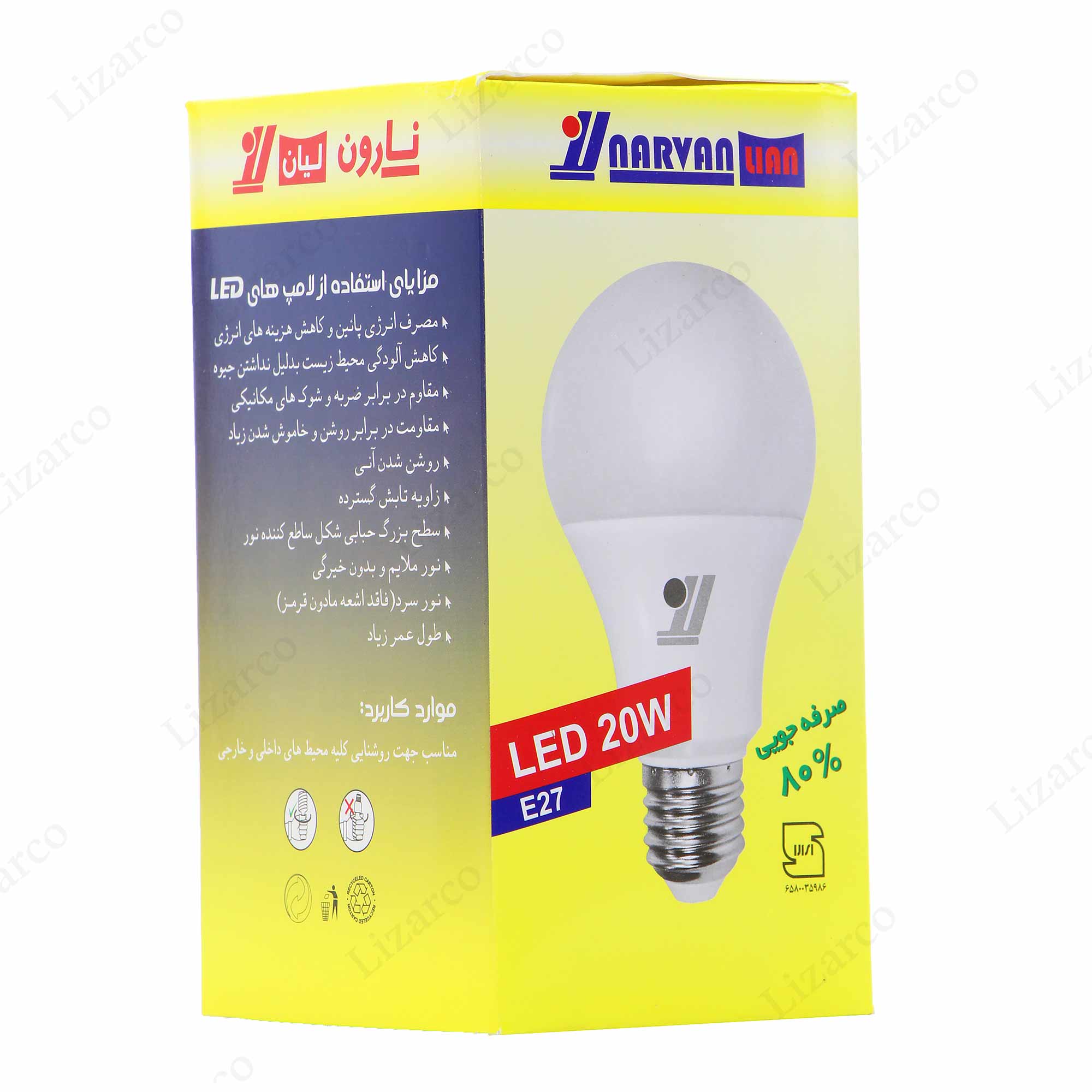 لامپ 20 وات LED آفتابی - نارون لیان (رنگ : آفتابی) - (تعداد در کارتن : 60)